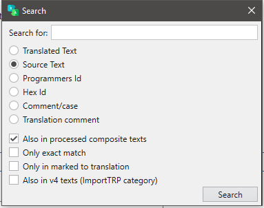• An extensive text search engine is available under the "Search" button. For example, it allows you to find a text by its identifier or a translator's comment.