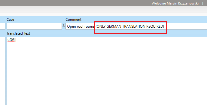 • Texts with the comment "ONLY <LANGUAGE> TRANSLATION REQUIRED" should not be translated, but only the original text should be copied from the "Source Text" window to the "Translated Text" window.